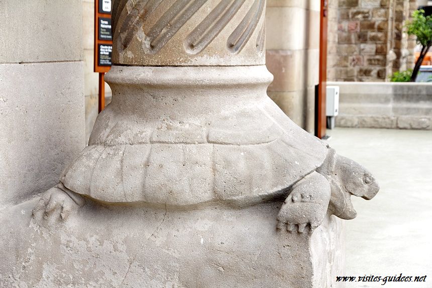 Deux tortues sont sculptées à la base, l'une de mer, côté littoral, et une de terre, côté montagne. Au Moyen Âge, il était habituel de représenter la ville de Jérusalem par une tour posée sur une tortue, symbolisant également le trait d'union entre ciel et terre.