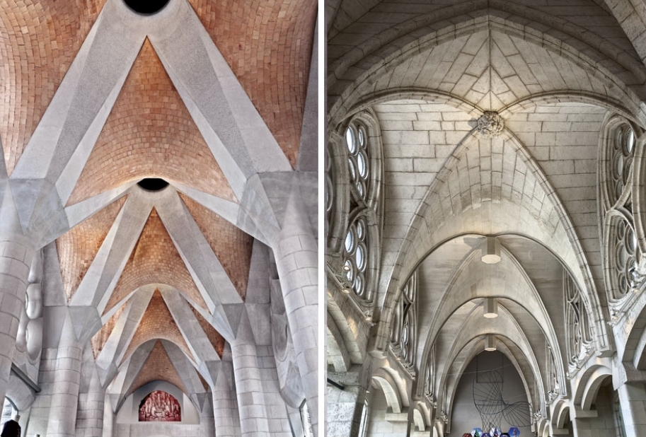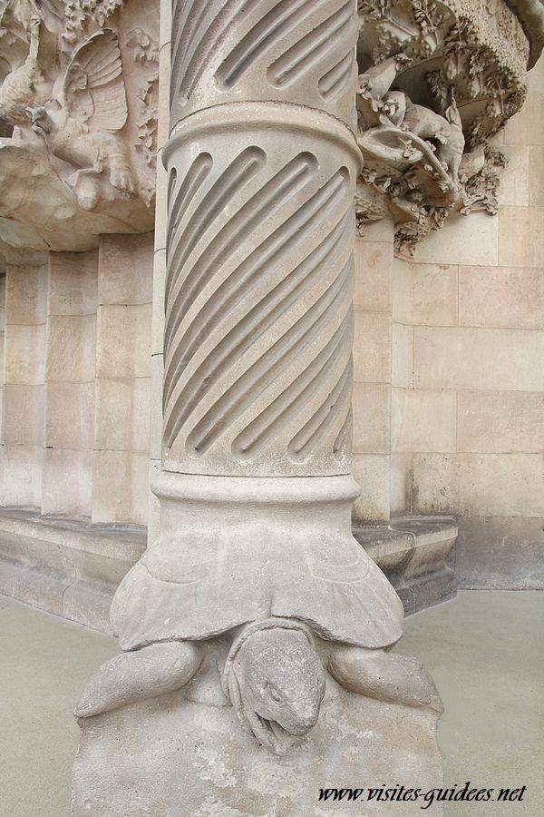 C'est pourquoi Gaudi rejeta la verticalité rigide de l'architecture classique et conçut des colonnes qui s'inclinaient avec la hauteur, afin d'absorber de façon optimale les charges provenant du plafonds. Le secret réside dans la rotation du fût dans deux directions - comme pour les arbres - pour obtenir plus de résistance et dans la ramification de la partie supérieure en petites colonnes pour que celles-ci supportent les voûtes des nefs.
