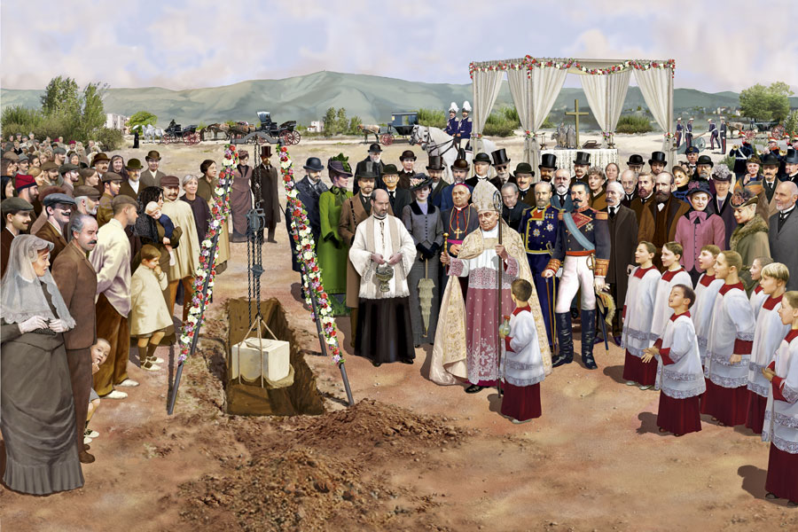 En 1878, l'association comptait déjà un demi-million de membres ce qui encouragea son créateur, le libraire et philanthrope Josep Maria Bocabella, à se lancer dans la construction d'un temple expiatoire dédié à la sainte Famille, financé uniquement par les dons des fidèles. Il passa plus de dix ans à chercher un terrain idéal pour concrétiser son rêve, et la première pierre de la Sagrada Familia fut posée en mars 1882.