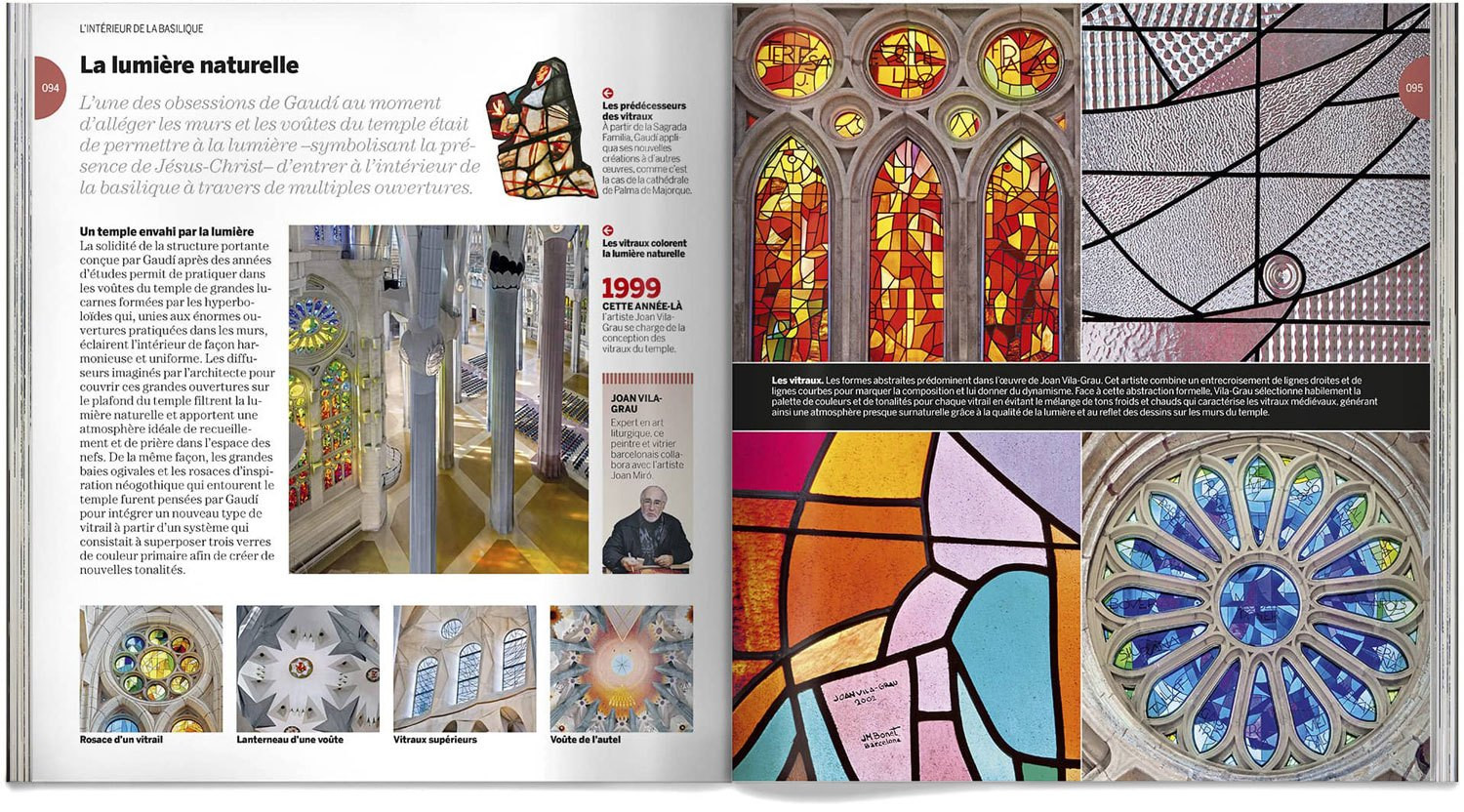 Eusebi Vila connait bien ces vitraux puisque son père, Joan Vila-Grau, avait dessiné ceux qui ont été posés dans la nef en 2001. "Mon père a dessiné et pensé toute l'organisation des vitraux et des couleurs en fonction des vitraux et des couleurs selon le mouvement du soleil. Ça commence par le lever du soleil avec des tonalités bleues, froides, puis il va évoluer chromatiquement vers la mi-journée et il termine avec des tonalités chaudes, qui sont celles de la lumière du coucher du soleil."