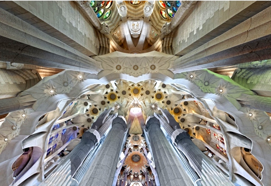 La forêt spirituelle conçue par Gaudi pour offrir aux fidèles une ambiance de prière et de recueillement à l'intérieur du temple représente l'apogée technique et artistique de l'architecte. Inspiré par les grandes cathédrales médiévales, Gaudi proposa pour la Sagrada Familia de réinterpréter le style gothique en tant que concept nécessaire pour symboliser l'union étroite entre le Ciel et la Terre à travers la hauteur et la lumière.