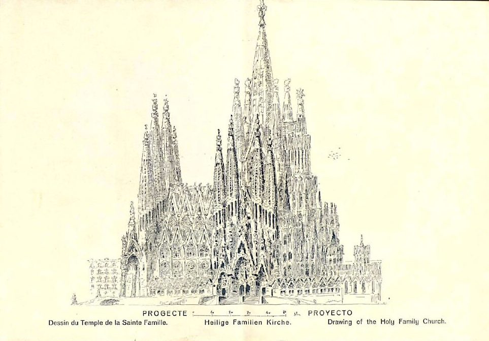 Dessin original de la façade, réalisé par Gaudi en 1911