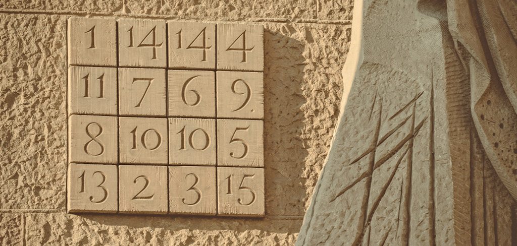 Si vous visitez l'église plusieurs fois, vous vous apercevrez qu'à chaque visite, vous découvrez des faits nouveaux. Sur la façade de la Passion, il en est une qui vous surprendra énormément. Il s'agit d'un petit encadré de chiffres quasi invisible, connu sous le nom de carré magique de la Sagrada Familia. Lorsque le visiteur pose son regard dessus, il constate qu'il est divisé en une grille comportant des nombres différents. Si l'on additionne ces chiffres, verticalement, horizontalement ou en diagonal, le total est de 33. Ce nombre correspond à l'âge auquel le Christ est mort. De manière générale, les nombres jouent un rôle important dans la Sagrada Familia et, en particulier, les nombre "5" et "3". Le 5 fait référence aux cinq sens humains et est un symbole de la perfection, tandis que le 3 symbolise la Trinité (Père, Fils et Saint-Esprit).