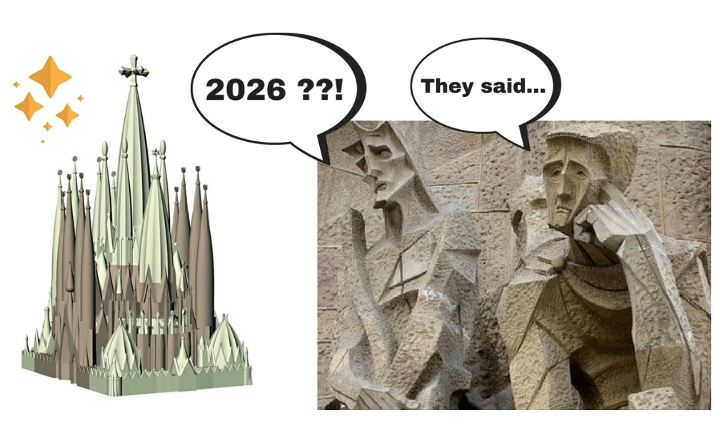 Dans le cas de la Sagrada Família, cela représente environ 150 ans, ce qui est certainement long pour un seul bâtiment. Une fois l'église achevée, la durée de construction sera plus longue que celle des pyramides d'Égypte, mais environ 50 ans plus courte que celle de la Grande Muraille de Chine. Evidemment, lorsque la construction a commencé en 1882, Gaudí et son équipe ne disposaient ni d'ordinateurs ni d'animations numériques. Aujourd'hui, la technologie assistée par ordinateur est en train de le construire.