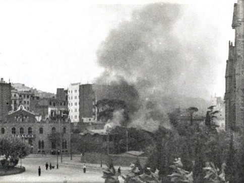 En 1936, au milieu de la guerre civile espagnole, un groupe d'anarchistes a envahi la Sagrada Família et a mis le feu à la crypte, mais aussi à l'atelier de Gaudi. Bien que certaines matériaux de construction importants aient été perdus, une partie a pu être sauvée. Pendant cette période de l'histoire, la construction a avancé pour des raisons évidentes.