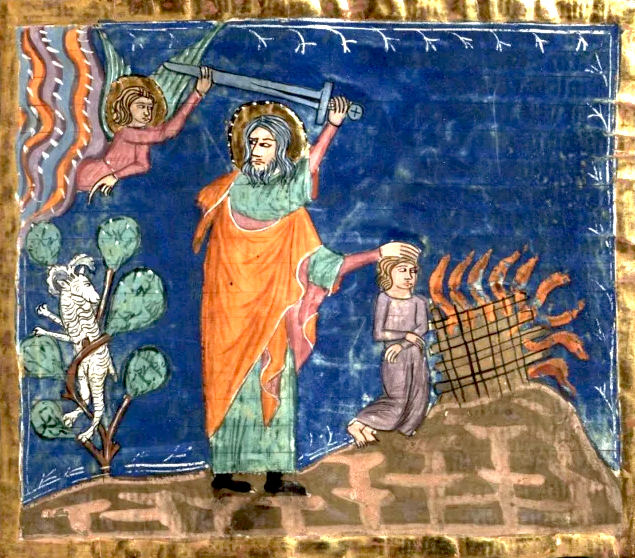 Sacrifice d'Isaac, enluminure de la chronique de Fulda, 3e quart du XIVe siècle