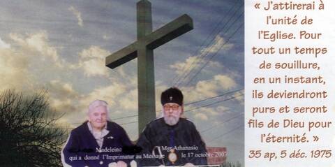 "Vous, Madeleine, qui êtes le seul Signe visible pour Mon Message, vous ne tomberez plus dans l'erreur. Désormais, Je vous l'ordonne, faites le Signe de la Croix dès qu'une lumière vous apparaîtra. Si c'est Satan, à l'instant même tout disparaîtra."