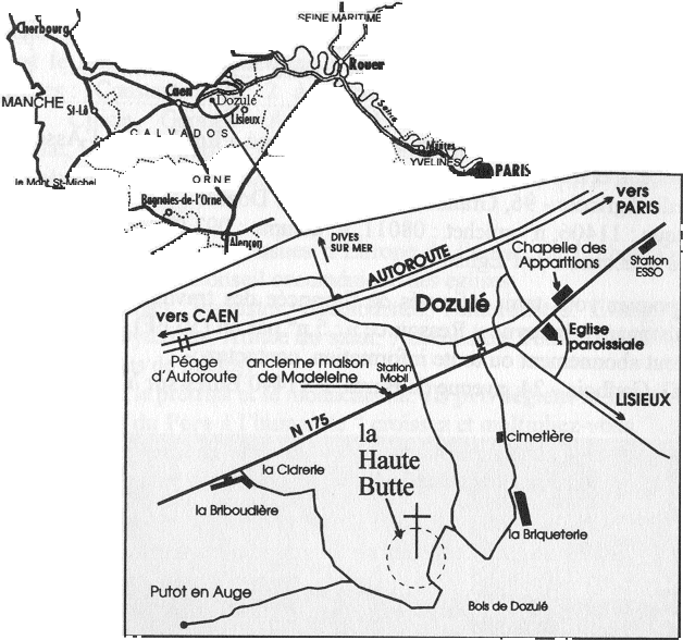 Madeleine Aumont, une femme toute simple, regarde la colline en face de sa fenêtre dernières heures de la nuit, le 28 mars 1972, à Dozulé en Normandie. «Tout à coup, j'ai vu quelque chose se former dans le ciel... Cela prenait la forme d'une Croix, une grande croix qui venait de se former. Plus brillante, plus claire que le jour. En voyant cette croix j'ai été impressionnée.