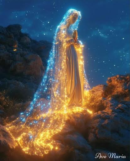 Apocalypse 12,1: «Un grand signe apparut dans le ciel: une Femme revêtue du soleil, la lune sous ses pieds, et sur sa tête une couronne de douze étoiles.» Symbole de Marie enveloppée de lumière divine, exempte de souillure.