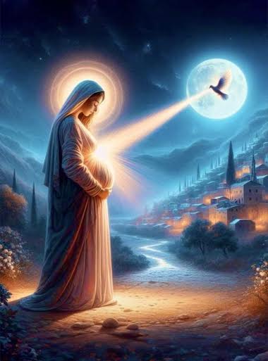 Matthieu 1,18-20 décrit Marie enceinte "par l'Esprit Saint" avant son union avec Joseph, rassuré en songe que l'enfant est "de l'Esprit Saint". Luc 1,34-35 rapporte la question de Marie («Comment cela se fera-t-il puisque je ne connais point d'homme?») et la réponse de l'ange: «L'Esprit Saint viendra sur toi, la puissance du Très-Haut te prendra sous son ombre». Cette naissance surnaturelle accomplit la prophétie d'Isaïe 7,14 ("Voici que la vierge concevra et enfantera un fils"). Elle souligne la sainteté originelle de Jésus, né sans péché originel, distinct de la lignée adamique pécheresse.