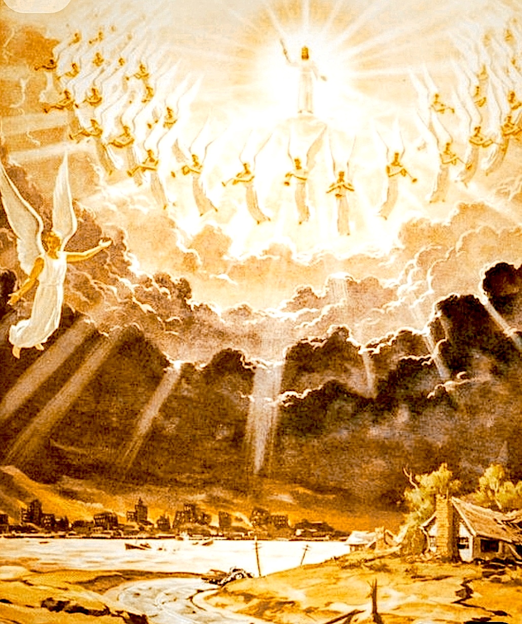 Les théologiens s'entendent même à penser que les plus grands parmi les Élus s'élèveront au niveau des choeurs supérieurs. devenus les égaux des Princes angéliques, ils l'emporteront en gloire, malgré leur nature matérielle, sur le monde des esprits.