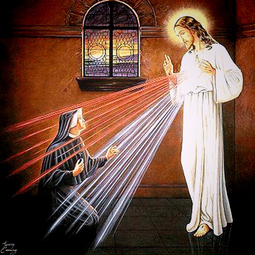 Ces rayons protègent les âmes de la colère de Mon Père. Heureux est celui qui vivra dans leur lumière, car la Main du Dieu Juste ne l'atteindra pas. Je désire que le premier dimanche après Pâques soit la fête de la Miséricorde.