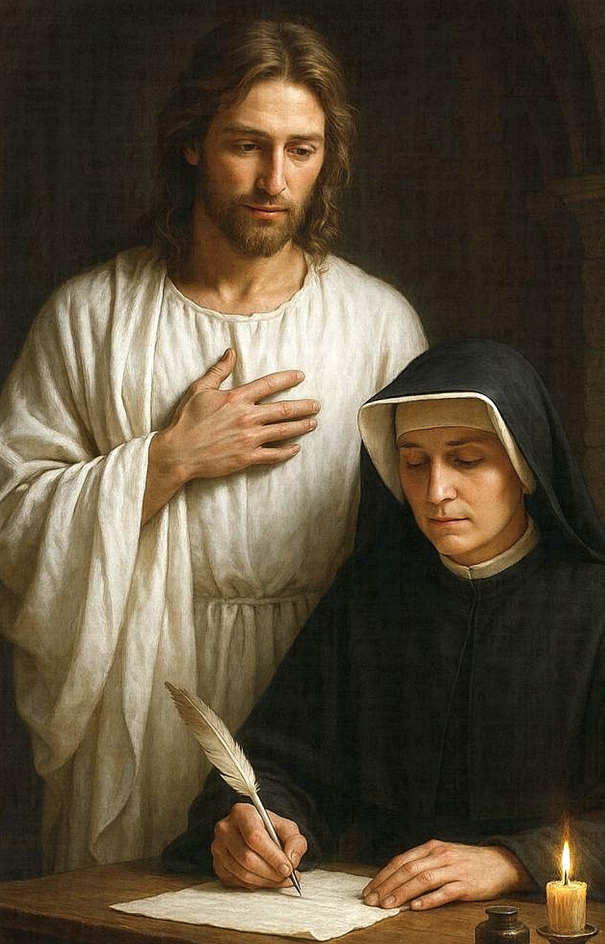 Par la suite, elle écrit dans son Petit Journal que le Christ lui a demandé de faire connaître au monde la profondeur de la Miséricorde divine: «Secrétaire de mon plus profond mystère, ton devoir est d'écrire tout ce que je te fais connaître à propos de ma miséricorde au profit des âmes qui, en lisant ces écrits, seront consolées et auront le courage de s'approcher de moi.»